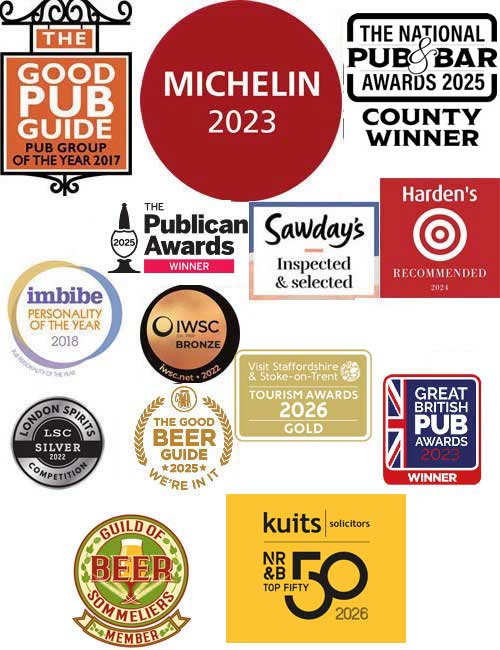 Winner Pub and Bar Magazine’s Best Pub in Staffordshire 2017, 2018, 2022, 2023